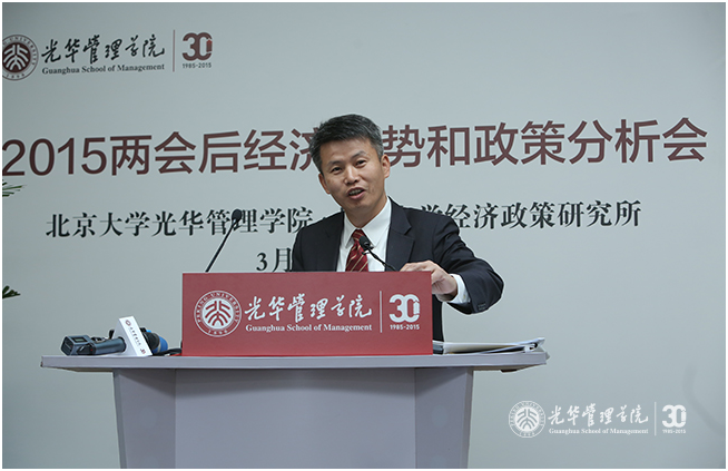 3月24日,由北京大学光华管理学院、北京大学经济研究所联合举办的“2015两会后经济形势和政策分析会”在北京大学光华管理学院召开。光华管理学院院长蔡洪滨及刘俏、姜国华、陈玉宇、陈松蹊教授以及北大光华EMBA、福元运通董事长孙立文作为嘉宾发表主题演讲,就宏观经济、新金融、资本市场、劳动力市场、民间借贷等问题展开讨论,解读两会热点,分析经济形势。新华社、人民日报、中央电视台、凤凰卫视、第一财经、中国国际广播电台、中央人民广播电台、China Daily、澎湃新闻等近70位媒体记者与会。